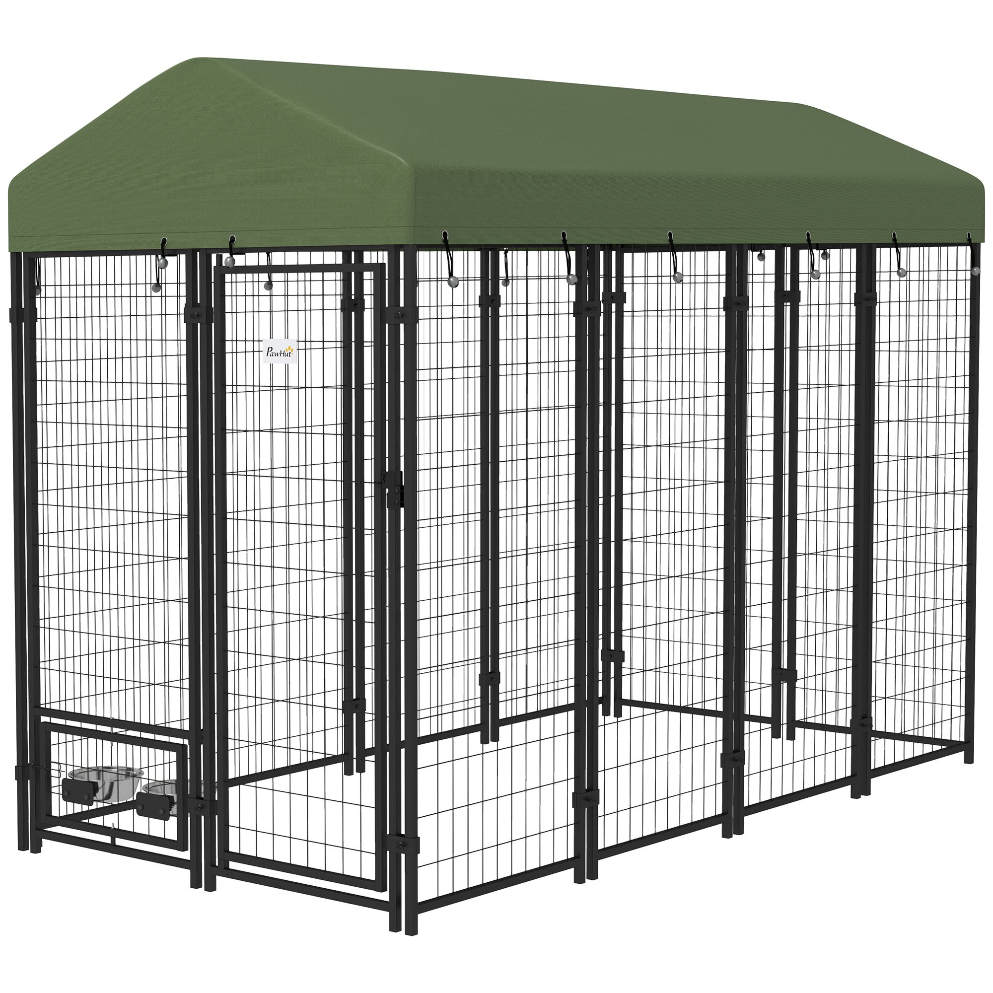 PawHut Outdoor Dog Kennel with Rotating Bowl Holders, Walk-in Pet Playpen with Waterproof Cover, 8' x 4' x 6', Green PawHut Outdoor Dog Kennel with Rotating Bowl Holders, Walk-in Pet Playpen with Waterproof Cover, 8' x 4' x 6', Green PawHut Outdoor Dog Kennel with Rotating Bowl Holders, Walk-in Pet Playpen with Waterproof Cover, 8' x 4' x 6', Green