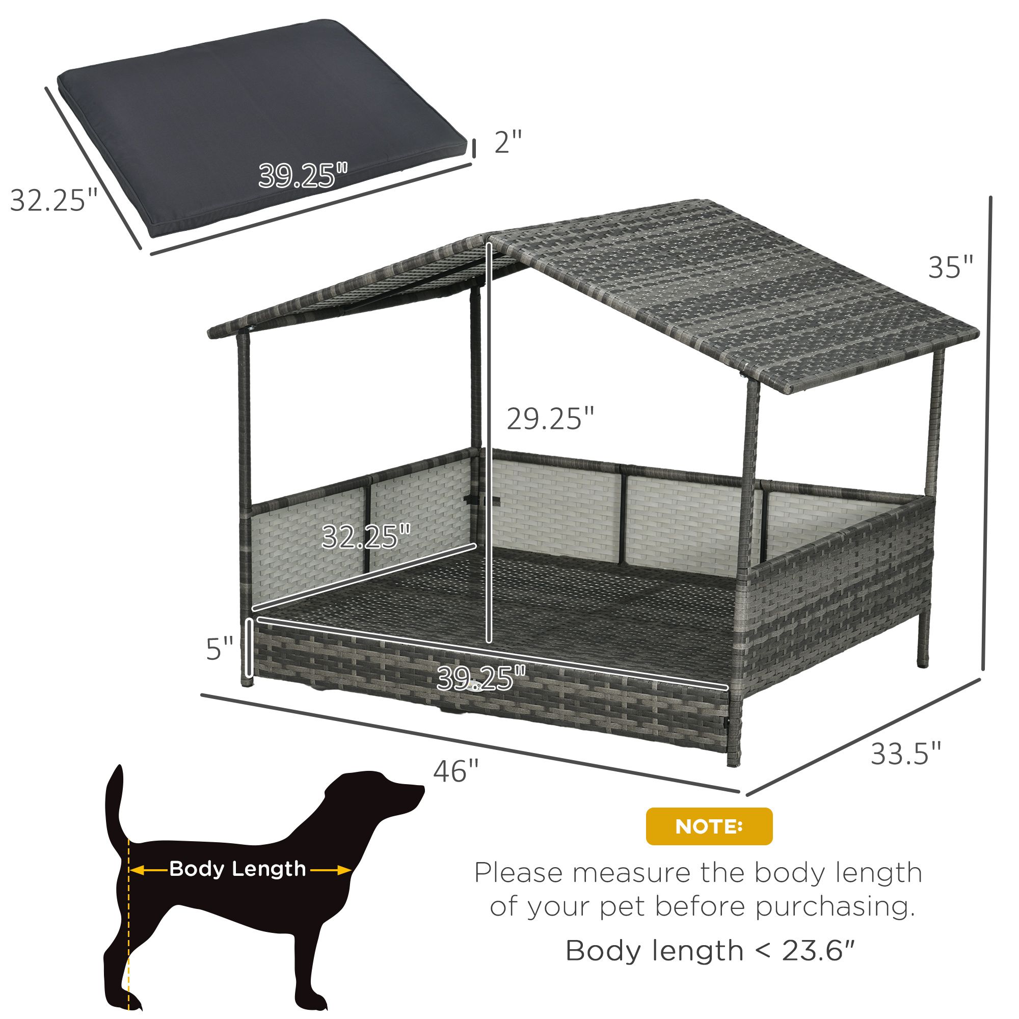 PawHut Rattan Outdoor Dog Bed with Canopy Soft Cushion Removable Cover Medium Large Dogs Gray