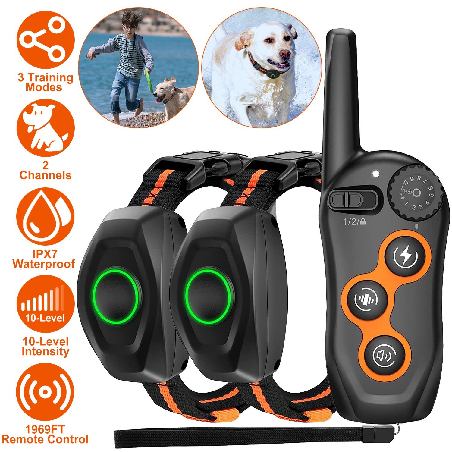*3 Training Modes & 2 Channels*:This dog training collar features beep; vibration; and shock modes. With 0-10 level adjustable intensity; you can adjust the stimulation level(only for vibration and shock modes) whenever needed. The transmitter comes with 2 channels to support training 2 dogs simultaneously.