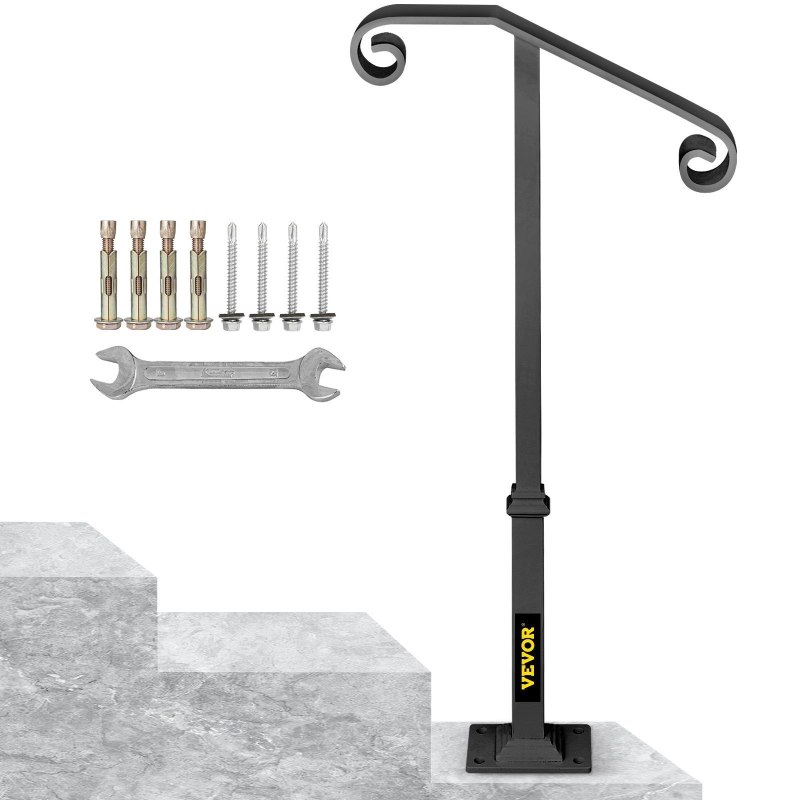 2.Sturdy Wrought Iron: This single post ornamental handrail is made of durable wrought iron with thick solid bases, more rigid and reliable than aluminum products. The well-welded structure ensures an excellent load capacity to provide a secure and comfortable grab bar for your family.