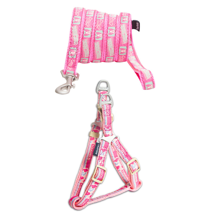 The Touchdog Tough-Stitched Durable Embroidered Harness and Leash Combination features Dual-reinforced stitching for durability and a designer printed pattern with an accented Stainless Steel leash connector located on the Harness.